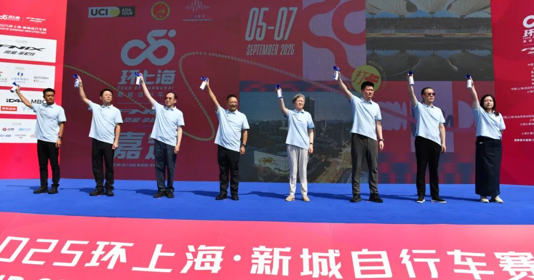 央视网消息:北京时间9月5日上午,2025环上海·新城自行车赛第一赛段的比赛在嘉定新城拉开战幕。今年赛事成功升级为国际自盟(UCI)2.2级别赛事,这是申城首个跻身UCI亚巡赛的男子公路自行车赛事,标志着赛事正式迈向国际舞台。上海市嘉定区委书记肖文高,上海市嘉定区区长高香,上海久事(集团)有限公司总裁孙冬琳,上海市体育局副局长罗文桦,上海市嘉定区副区长王超,上海久事(集团)有限公司副总裁樊建林,亚洲自行车运动联合会公路委员会主席、中国自行车运动协会副秘书长韩峰,凤凰菲尼仕-凤凰有礼事业部总经理刘伟共同为赛事第一赛段鸣笛发令。