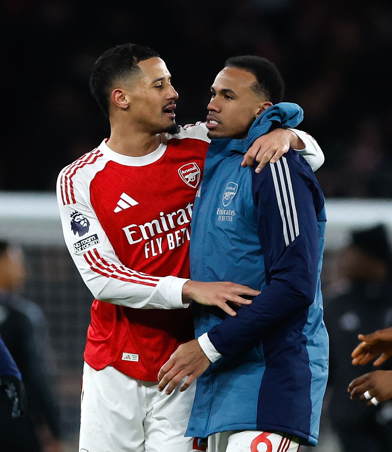 加布里埃尔在比赛中同样表现挣扎,阿森纳传奇主帅温格称这两名中卫在当日的比赛中“十分紧张”。前曼联后卫琼斯表示,眼看着球队又要痛失好局,阿森纳全队以及整座球场都弥漫着“恐惧与绝望”的情绪。他强调,加布里埃尔和萨利巴在面对曼联时展现出了“前所未有的脆弱状态”。