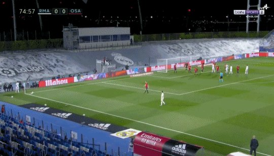 76'皇马左路角球机会,伊斯科主罚到后点,米利唐头球打破僵局,1比0!